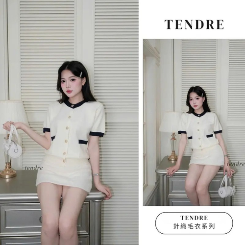 (TENDRE夏季系列)高級短袖針織開襟衫,圓領設計,金色紐扣,優雅韓系千金風Ulzzang風格B01。